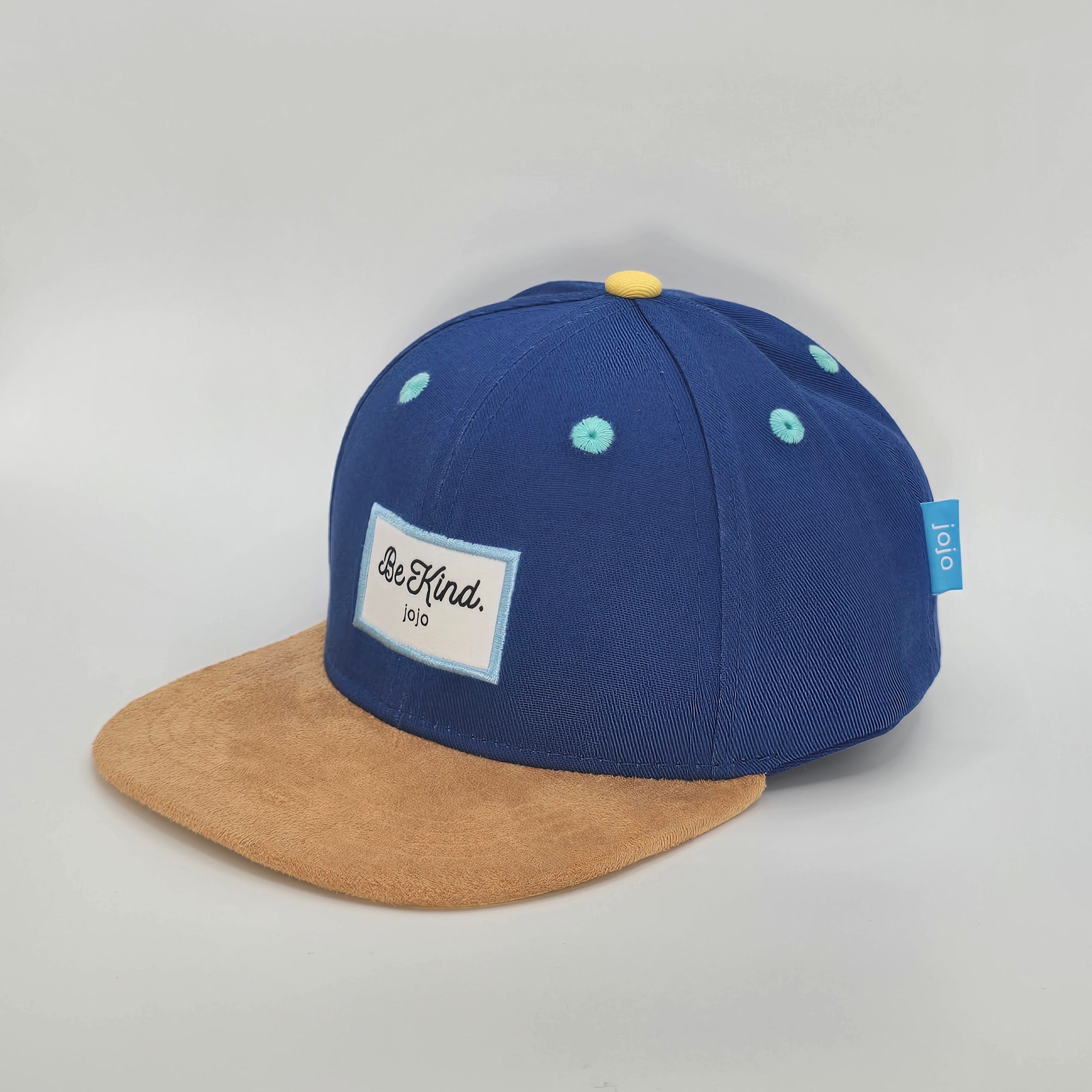 Turn heads and spread good vibes with the Deep Bluey cap — where cool meets kind. This bold blue beauty rocks a suede-style caramel brim, cheeky aqua dots, and a sunshine yellow top pop for extra flair. Finished with our signature Be Kind patch, it’s got feel-good swagger built in. Whether they’re climbing trees or cruising the playground, your little legend will be sun-safe, stylish, and totally unstoppable. By Jojo – made for mini humans with big energy.